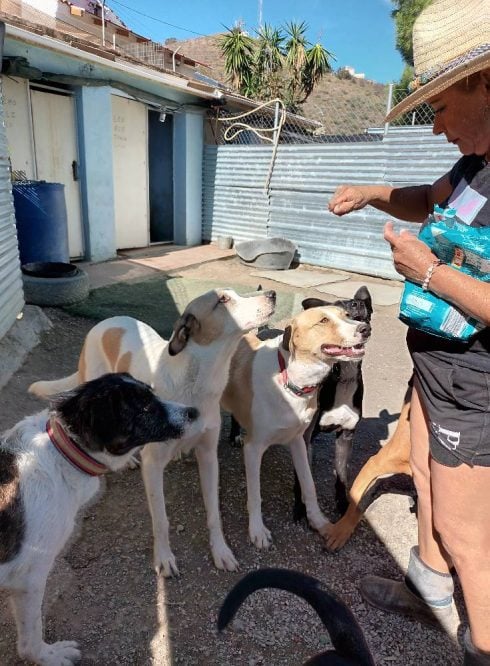 A volunteer feeding dogs. Photo: El Refugio de Leo/Facebook