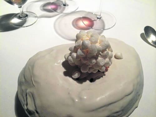 In all we ate 20-odd courses and it proved to be a good choice with the menu varied, original and exciting, starting with the arrival of a bonsai olive tree, off which we were encouraged to pick anchovy-stuffed olives from the nearby Ampurdan.